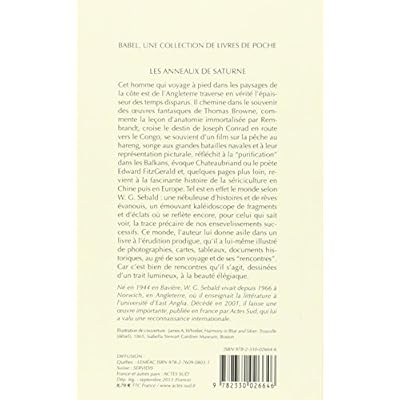 Cet homme qui voyage à pied dans les paysages de la côte est de l'Angleterre traverse en vérité l'épaisseur des temps disparus. Il chemine dans le souvenir des oeuvres fantasques de Thomas Browne, commente la leçon d'anatomie immortalisée par Rembrandt, croise le destin de Joseph Conrad en route vers le Congo, se souvient d'un film sur la pêche au hareng, songe aux grandes batailles navales et à leur représentation picturale, réfléchit à la "purification" dans les Balkans, évoque Chateaubriand ou le poète Edward FitzGerald et, quelques pages plus loin, revient à la fascinante histoire de la sériciculture en Chine puis en Europe. Tel est en effet le monde selon Winfried Georg Sebald : une nébuleuse d'histoires et de rêves évanouis, un émouvant kaléidoscope de fragments et d'éclats où se reflète encore, pour celui qui sait voir, la trace précaire de nos ensevelissements successifs. Ce monde, l'auteur lui donne asile dans un livre à l'érudition prodigue, qu'il a lui-même illustré de photographies, cartes, tableaux, documents historiques, au gré de son voyage et de ses "rencontres". Car c'est bien de rencontres qu'il s'agit, dessinées d'un trait lumineux, à la beauté élégiaque.